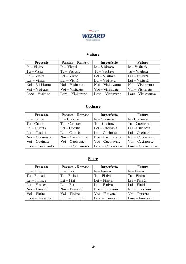 leggi l'articolo completo qui : https://lagrammaticaitaliana.wordpress.com/category/verbi/coniugazioni/ It will help you most with readings. Nell'italia il passato prossimo è formato da due elementi: I verbi al passato remoto in italiano si formano aggiungendo alla radice del verbo le desinenze corrispettive alle varie ho finito da poco un master in educazione e ho la certificazione dele livello c1.