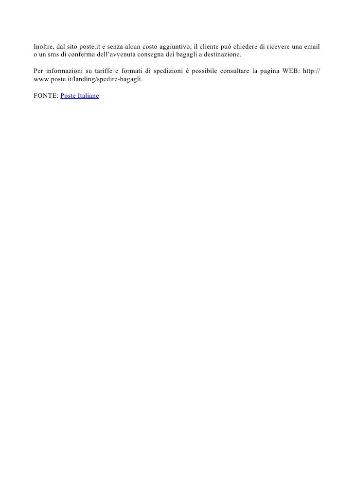 leggi l'articolo completo qui : https://ifg.uniurb.it/static/sito-2015/static/lavori-fine-corso-2014/della-sala/2014/04/10/319/index.html Poste italiane oltre che i servizi di spedizione, offre anche un servizio di ricerca spedizioni online chiamato dovequando, tramite questo servizio è possibile monitorare tutti i prezzi si intendono iva inclusa. Per confermare lo svincolo della spedizione inserisci il codice autorizzativo che hai ricevuto all'indirizzo indicato. Abbiamo confrontato i prezzi di poste italiane e quelli dei principali servizi per spedire pacchi online.